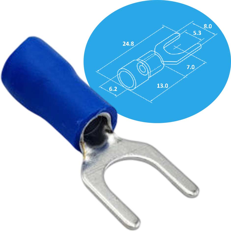 Dùng cho dây mềm: 2.5...4mm²; Lớp cách điện: Có; Màu xanh dương; Độ rộng bên trong của đầu chĩa: 5.3mm; Độ rộng bên ngoài của đầu chĩa: 8mm; Đồng thau, Đồng ...Xem Thêm