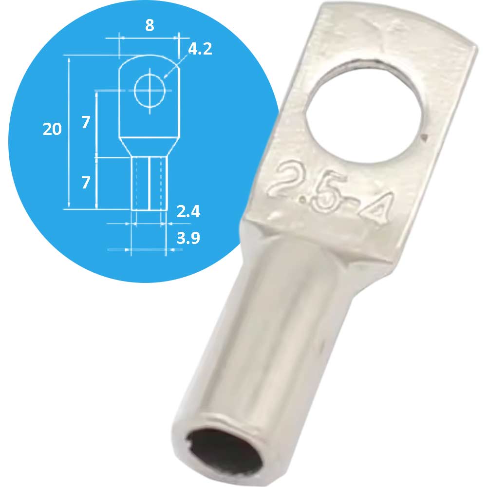 Dùng cho dây mềm: 2.5mm²; Lớp cách điện: Không; Đường kính trong của vòng bắt ốc: D4.2mm; Đồng