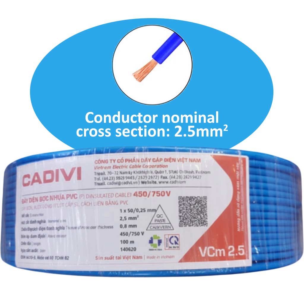 VCm 2 5  1x50 0 25  450 750V BL CADIVI Dây điện cách điện PVC