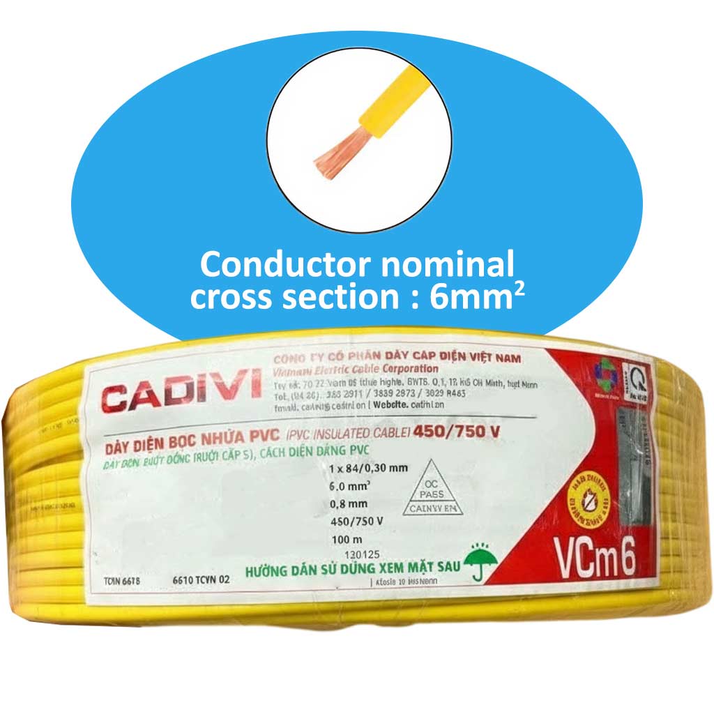 Dây điện cách điện PVC CADIVI VCm-6 (1x84/0.30)-450/750V-Y