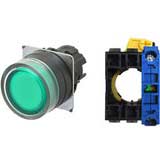Không đèn; D22, D25; Xanh lá; 1NO; Nhấn giữ; Hình tròn bảo vệ đầy đủ (Lắp phẳng); Chất liệu vỏ: Nhựa; Chất liệu vòng bezel: Nhựa