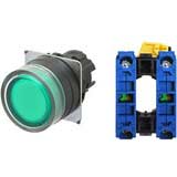 Không đèn; D22, D25; Xanh lá; 2NO; Nhấn giữ; Hình tròn bảo vệ đầy đủ (Lắp phẳng); Chất liệu vỏ: Nhựa; Chất liệu vòng bezel: Nhựa