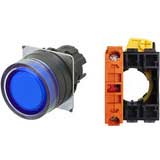 Không đèn; D22, D25; Xanh da trời; 1NC; Nhấn nhả; Hình tròn bảo vệ đầy đủ (Lắp phẳng); Chất liệu vỏ: Nhựa; Chất liệu vòng bezel: Nhựa
