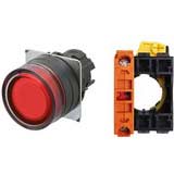 Không đèn; D22, D25; Đỏ; 1NC; Nhấn nhả; Hình tròn bảo vệ đầy đủ (Lắp phẳng); Chất liệu vỏ: Nhựa; Chất liệu vòng bezel: Nhựa
