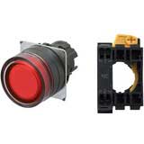Không đèn; D22, D25; Đỏ; 1NC; Nhấn nhả; Hình tròn bảo vệ đầy đủ (Lắp phẳng); Chất liệu vỏ: Nhựa; Chất liệu vòng bezel: Nhựa