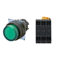 Không đèn; D22, D25; Xanh lá; 2NO+1NC; Nhấn giữ; Hình tròn mở rộng; Chất liệu vỏ: Nhựa; Chất liệu vòng bezel: Nhựa