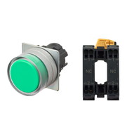 Không đèn; D22, D25; Xanh lá; 2NC; Nhấn nhả; Hình tròn bảo vệ đầy đủ (Lắp phẳng); Chất liệu vỏ: Nhựa; Chất liệu vòng bezel: Kim loại