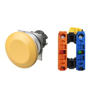 Không đèn; D22, D25; Vàng; 1NO+1NC; Nhấn giữ; Nút nhấn nấm; Chất liệu vỏ: Nhựa; Chất liệu vòng bezel: Kim loại