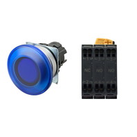 Không đèn; D22, D25; Xanh da trời; 2NO+1NC; Nhấn giữ; Nút nhấn nấm; Chất liệu vỏ: Nhựa; Chất liệu vòng bezel: Kim loại