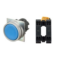Không đèn; D22, D25; Xanh da trời; 1NO+1NC; Nhấn giữ; Hình tròn bảo vệ đầy đủ (Lắp phẳng); Chất liệu vỏ: Nhựa; Chất liệu vòng bezel: Kim loại