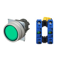 Không đèn; D22, D25; Xanh lá; 2NO; Nhấn nhả; Hình tròn bảo vệ đầy đủ (Lắp phẳng); Chất liệu vỏ: Nhựa; Chất liệu vòng bezel: Kim loại