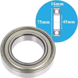 Đường kính lỗ trục: 45mm; Đường kính ngoài: 75mm; Độ dày vòng bi: 16mm; Tải trọng động: 20.9kN; Khoảng hở/Tải trọng ban đầu/Cấp dung sai: Khe hở C3