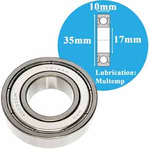 Đường kính lỗ trục: 17mm; Đường kính ngoài: 35mm; Độ dày vòng bi: 10mm; Tải trọng động: 7.55kN; Tải trọng tĩnh: 3.35kN; Khoảng hở/Tải trọng ban đầu/Cấp dung sai: Đạt tiêu chuẩn độ rung thấp và độ chính xác cao. Thích hợp cho các ứng dụng như động cơ điện