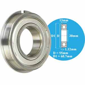 Đường kính lỗ trục: 30mm; Đường kính ngoài: 55mm; Độ dày vòng bi: 13mm; Tải trọng động: 14.7kN; Tải trọng tĩnh: 8.3kN; Khoảng hở/Tải trọng ban đầu/Cấp dung sai: Khe hở thường