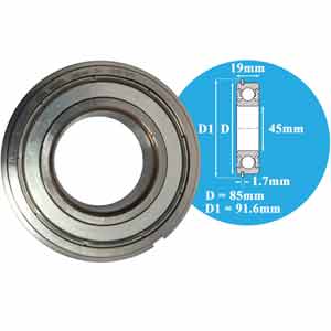 Đường kính lỗ trục: 45mm; Đường kính ngoài: 85mm; Độ dày vòng bi: 19mm; Tải trọng động: 36kN; Tải trọng tĩnh: 20.4kN; Khoảng hở/Tải trọng ban đầu/Cấp dung sai: Khe hở thường