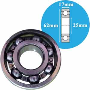 Đường kính lỗ trục: 25mm; Đường kính ngoài: 62mm; Độ dày vòng bi: 17mm; Tải trọng động: 23.5kN; Khoảng hở/Tải trọng ban đầu/Cấp dung sai: Khe hở C3