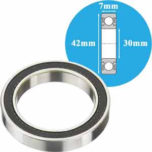 Đường kính lỗ trục: 30mm; Đường kính ngoài: 42mm; Độ dày vòng bi: 7mm; Tải trọng động: 5.2kN; Tải trọng tĩnh: 3.65kN; Khoảng hở/Tải trọng ban đầu/Cấp dung sai: Khe hở thường
