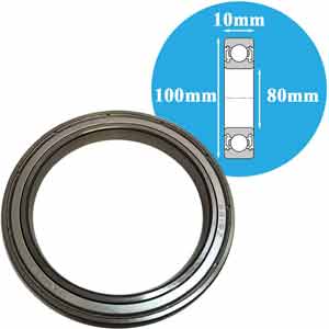 Đường kính lỗ trục: 80mm; Đường kính ngoài: 100mm; Độ dày vòng bi: 10mm; Tải trọng động: 14kN; Tải trọng tĩnh: 13.3kN; Khoảng hở/Tải trọng ban đầu/Cấp dung sai: Khe hở thường