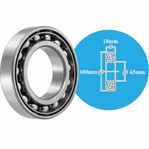 Đường kính lỗ trục: 65mm; Đường kính ngoài: 100mm; Độ dày vòng bi: 18mm; Khoảng hở/Tải trọng ban đầu/Cấp dung sai: Khe hở thường