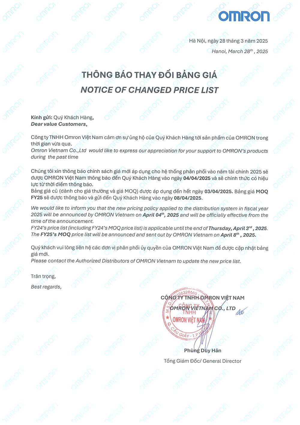 Omron chính thức thông báo điều chỉnh bảng giá cho năm tài chính 2025.